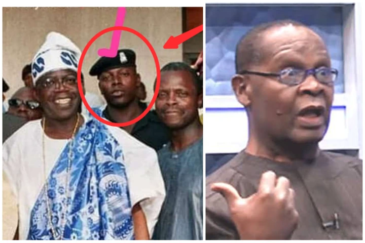 Joe said the police man in the picture above is known as Lawal Gbolahan and he was Tinubu's ADC, Joe explained that one year after Tinubu finished his tenure as the governor of Lagos State, Lawal was asked to resign from the police force, and he resigned at the level of superintendent of police, he said after Lawal resigned form the police force he was appointed as a special adviser to Fashola and he held the position for two years, after Fashola was re-elected into office, Lawal was appointed as a commissioner till 2015. Joe Igbokwe also noted that Lawal served as a commissioner under Ambode and Sanwoolu, but he had to resign in 2020, two days after he was installed as the Oniru of Iru.